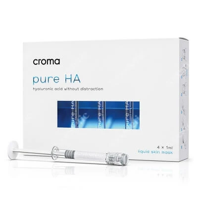 Croma Pure HA Liquid Skin Mask – płynna maska w ampułkach z czystym kwasem hialuronowym w stężeniu 1,8%, gliceryną i kwasem cytrynowym. Lekka, jedwabista konsystencja i uniwersalna formuła sprawiają, że maska Pure HA doskonale sprawdza się przy każdym rodzaju skóry.